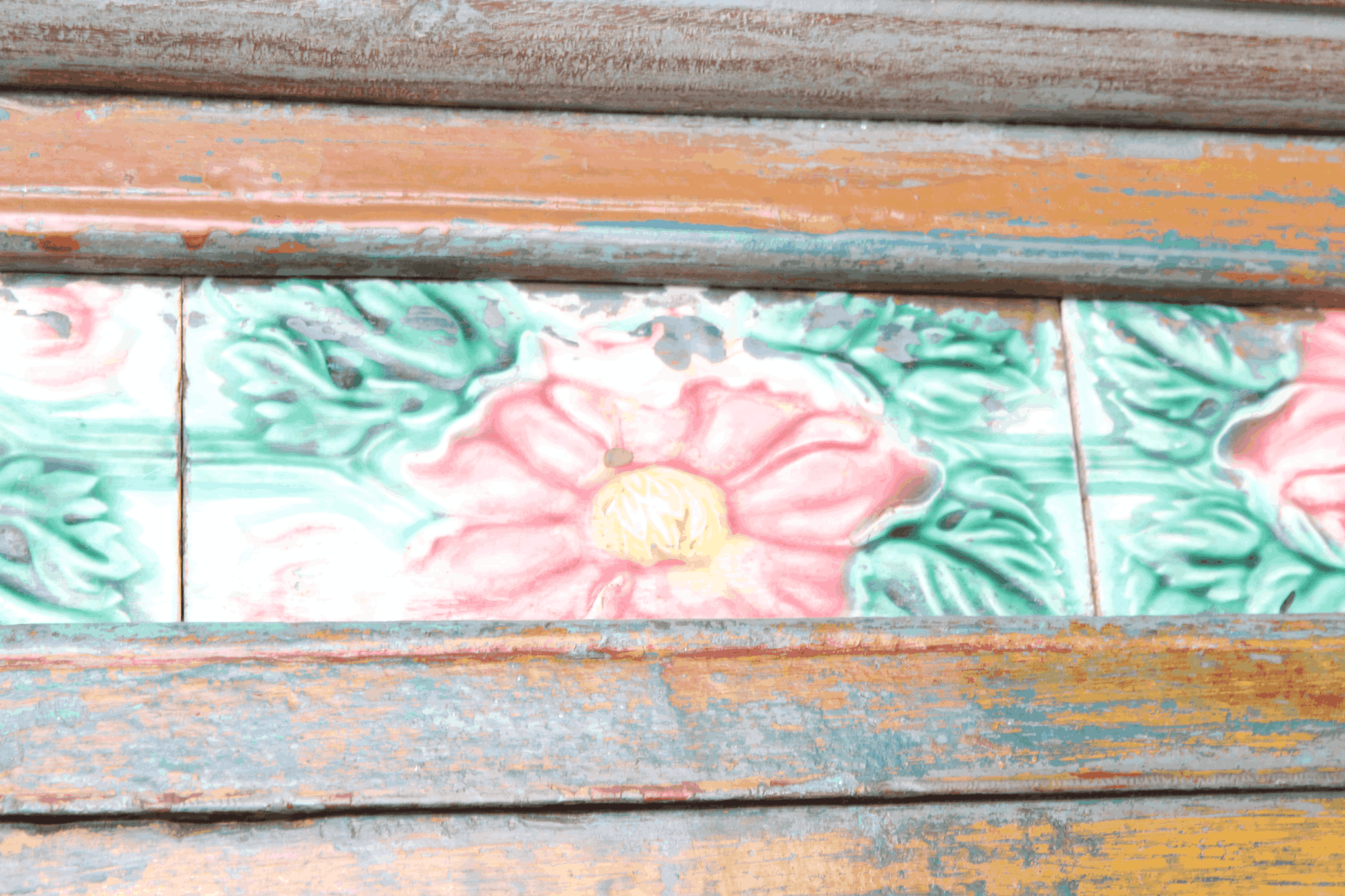 A statement piece full of history and colour. This vintage cabinet features a soft blue and golden yellow patina, with hand-painted floral detailing that adds a touch of artistry and charm. Each layer of weathered paint and texture tells a story from its past life, creating an unmistakably characterful piece.