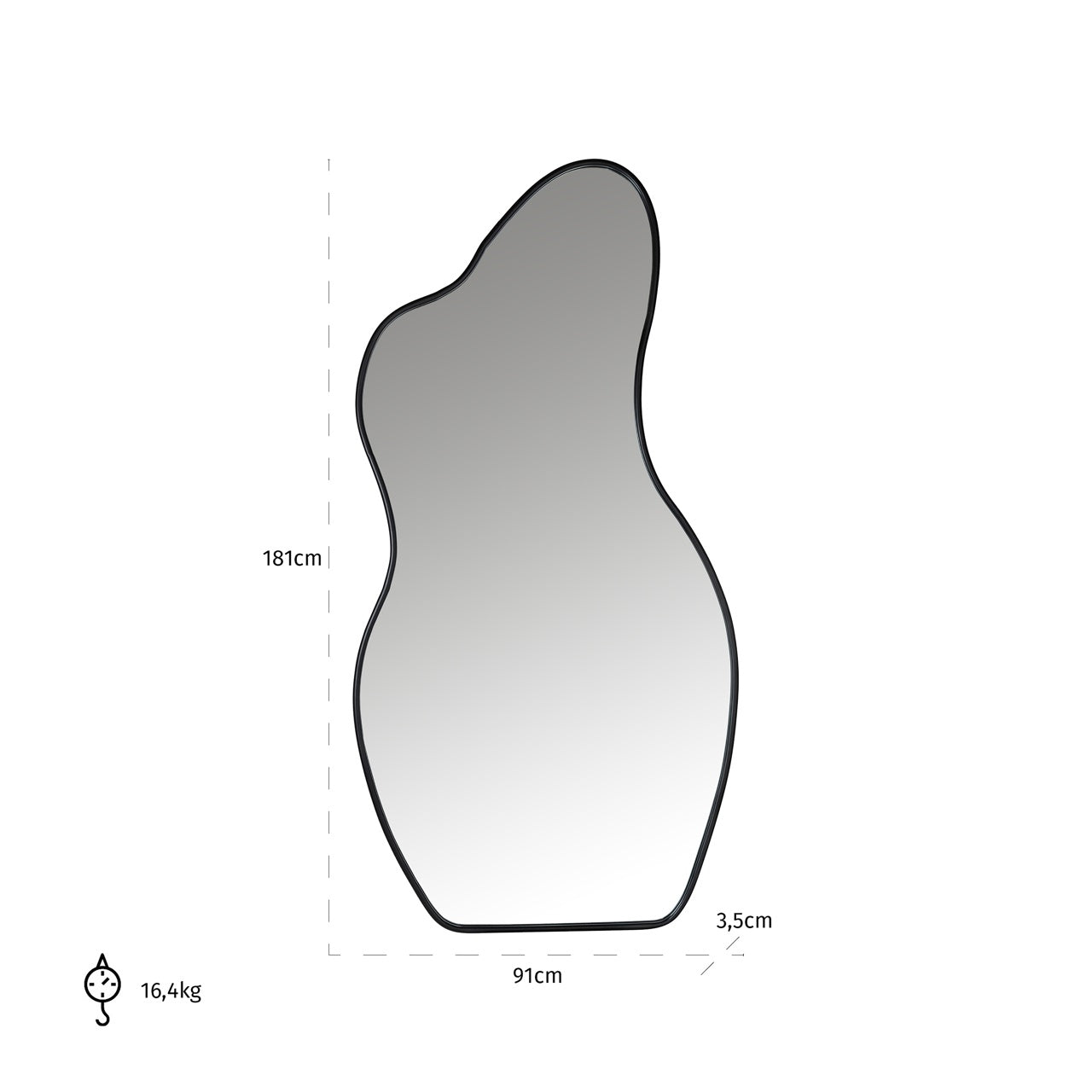 The generous scale makes it ideal for hallways, bedrooms or dining spaces, where it helps reflect light and create a greater sense of depth. Its sculptural silhouette works just as well leaned casually against a wall as it does fixed in place, adding character without overwhelming the space.