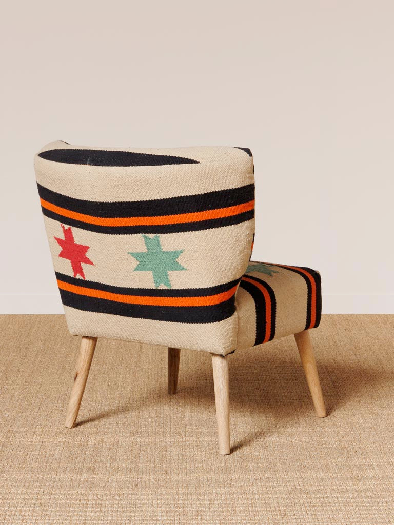 Upholstered in a mix of multicoloured cotton and jute, this compact armchair from Chehoma brings warmth and texture to any space. The sturdy mango wood frame adds a rustic touch, making it a characterful addition to bedrooms, reading corners, or smaller living areas.