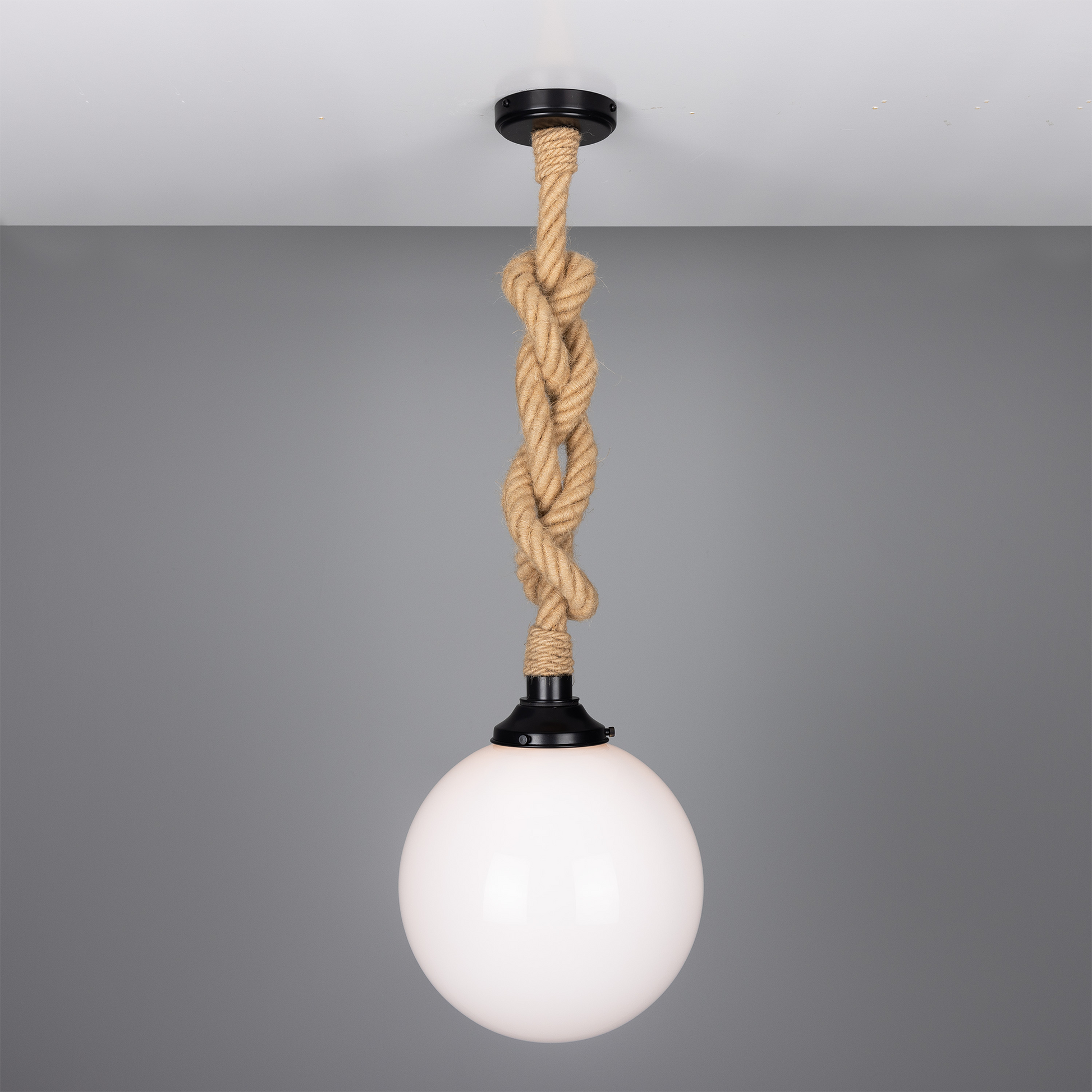 Azores Jute Rope Pendant Light with Opal Glass Globe 30cm IP44