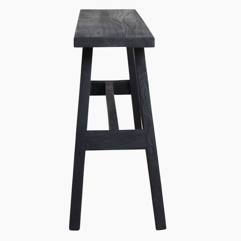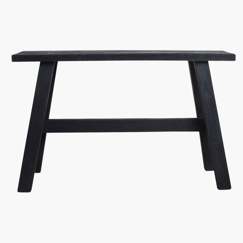This unique bench from Raw Materials carries a piece of history into your home. Originally used at bus stops in India, each wooden bench has its own character and imperfections that reflect its previous life. With its simple design and distressed black finish, it works beautifully as extra seating, a decorative accent, or even a plant stand, adding rustic charm to vintage, industrial, or eclectic interiors.