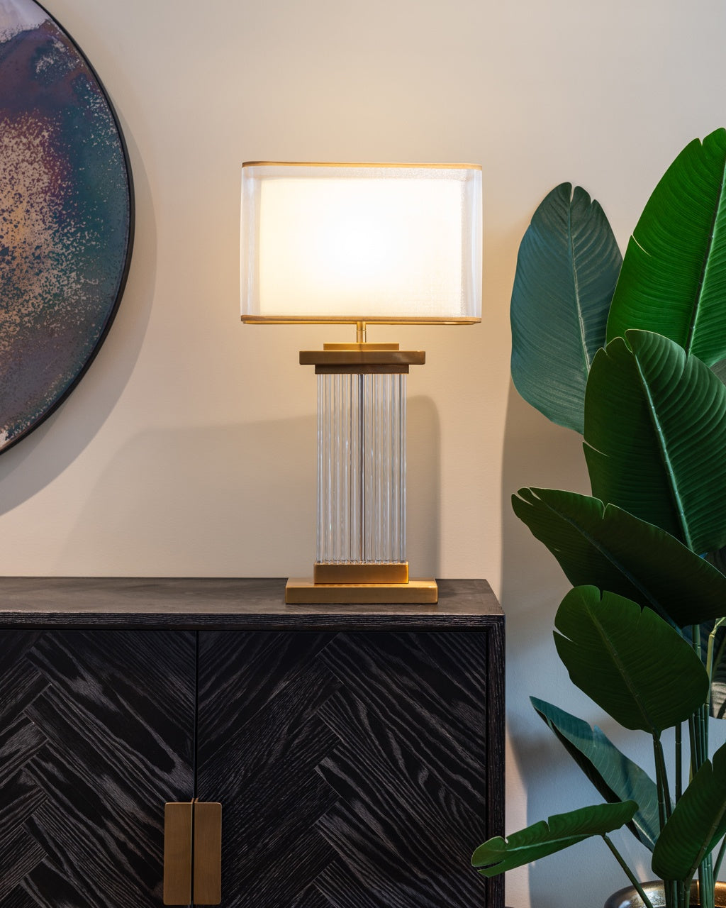 This striking sideboard from Richmond Interiors blends sleek modern design with refined detailing. Crafted from black rustic oak veneer in an elegant herringbone pattern, it’s supported by brushed gold stainless steel legs and finished with matching fittings for a touch of luxury. Behind its four doors, generous storage keeps dining or living room essentials neatly organised while maintaining a sophisticated, contemporary look.