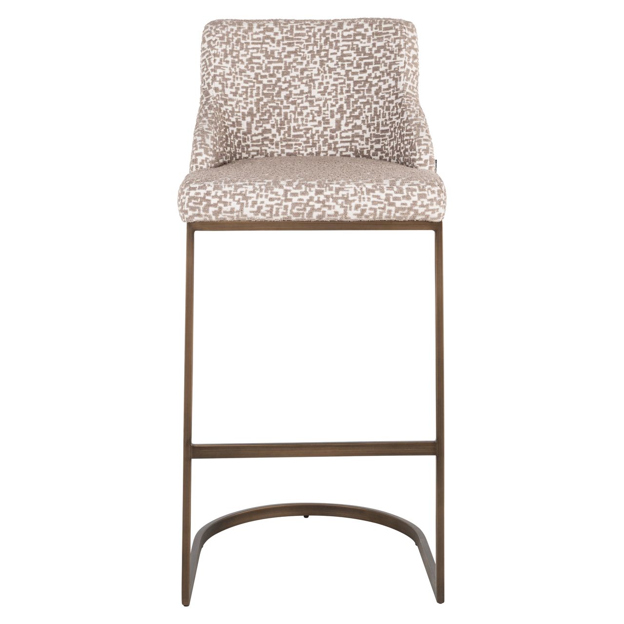 A refined bar-height dining chair designed for comfort and modern style. Upholstered in a range of rich fabrics including Khaki Velvet, Natural Geo, Brown Tweed and Natural Renegade, each option offers its own character and texture. The curved backrest and cushioned seat provide support, while brushed gold legs add warmth and a touch of understated luxury. Perfect for creating a welcoming, stylish setting for dining or entertaining.