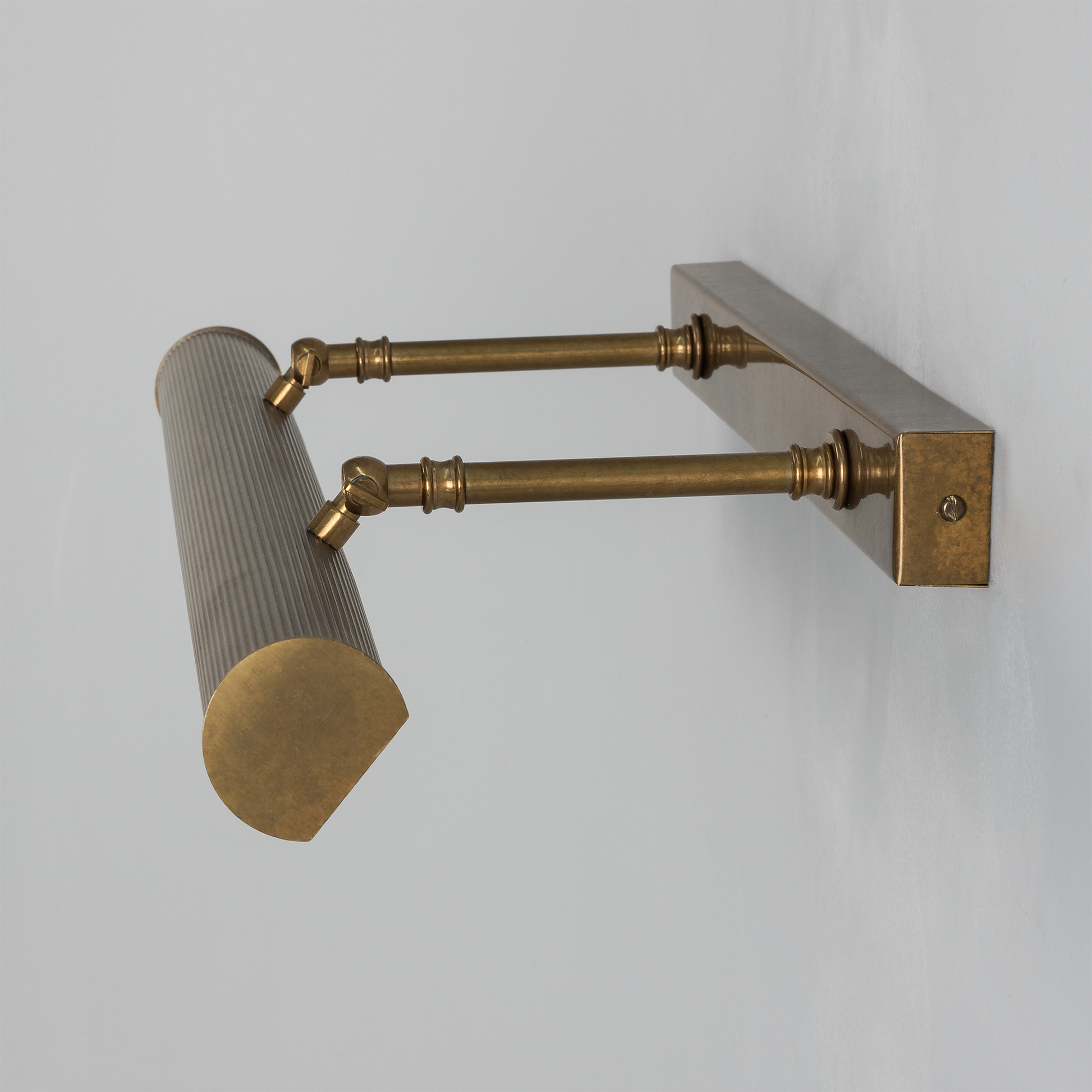 Offering a refined way to illuminate artwork, this adjustable picture light delivers controlled, even illumination with a composed and purposeful feel. Crafted from solid brass, the reeded cylindrical shade casts a wide, balanced wash of light that enhances colour and detail without glare, making it ideal for artwork, prints and feature pieces.