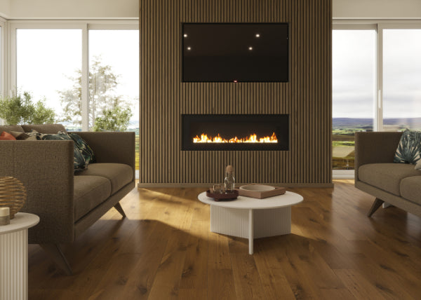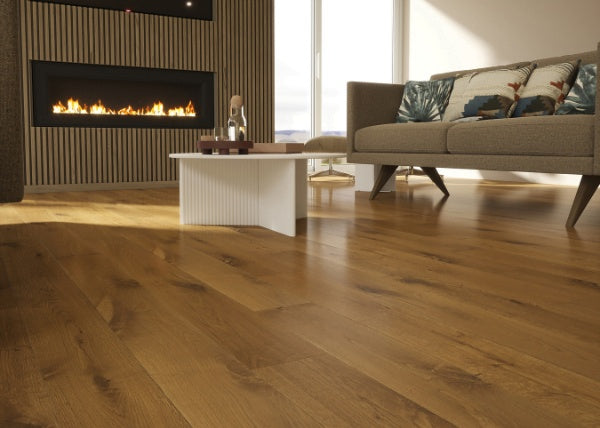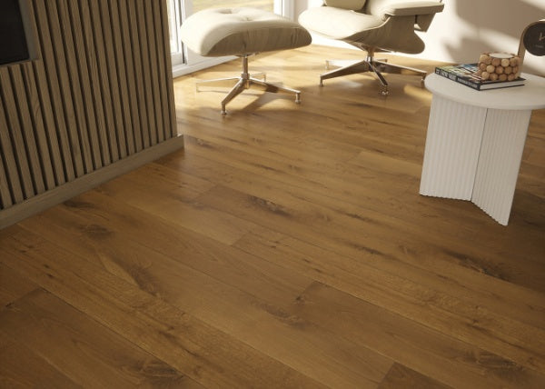 A richly grained 15 mm engineered oak plank in a warm Character+ grade with natural knots and colour variation. The hardwax oiled finish keeps the look soft and natural, while 220 mm boards in random long lengths lay in easy, flowing lines. Tongue and groove joints suit a float over underlay or a full bond, and it’s compatible with underfloor heating.