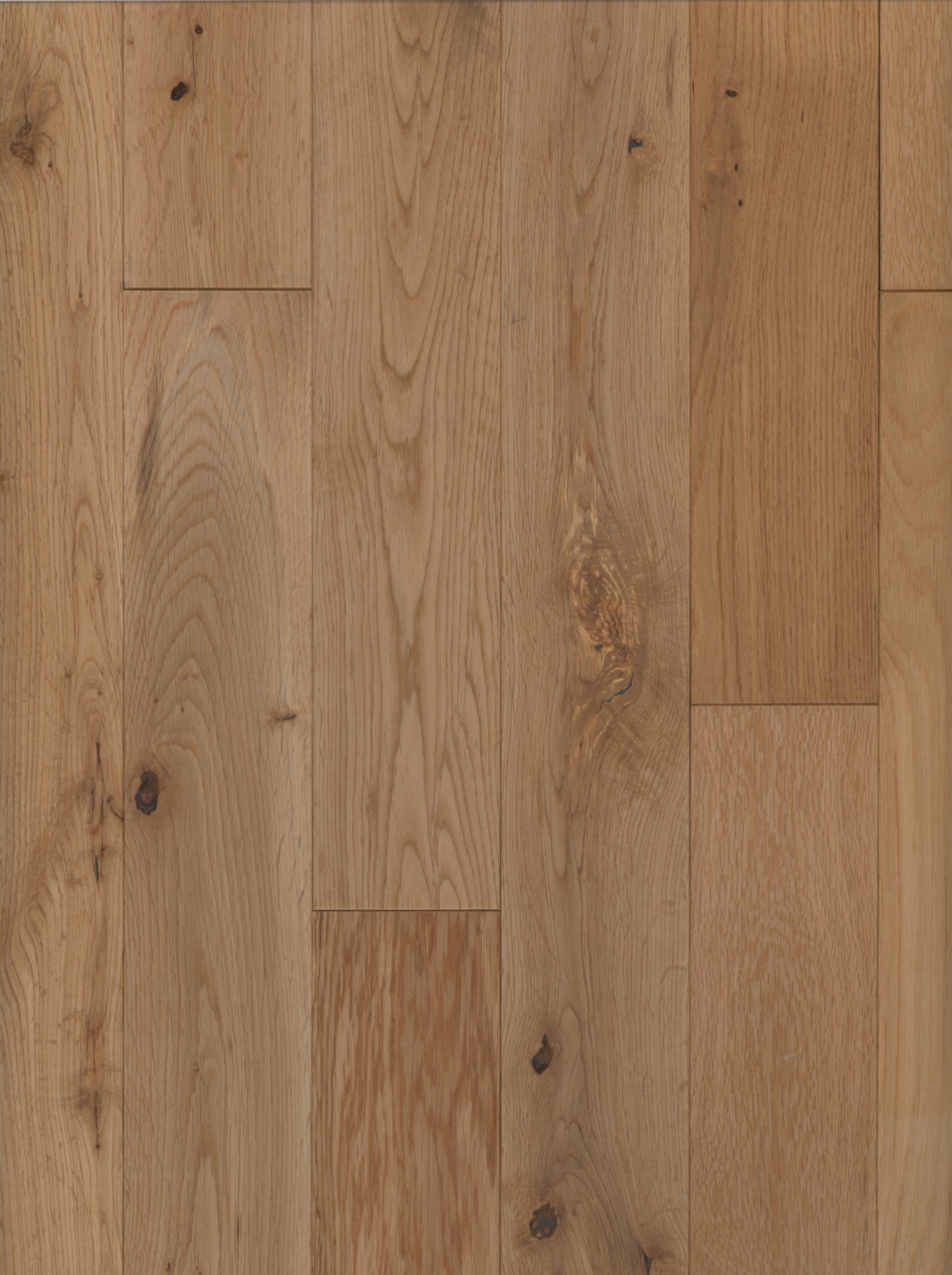 A beautiful solid white oak floor finished in a UV satin lacquer. Character/Rustic grade brings medium colour variation and bold, attractive knots. The 90 mm tongue-and-groove boards come in random lengths for a classic, seamless look, and the warm shade helps lift and cosy the room.
