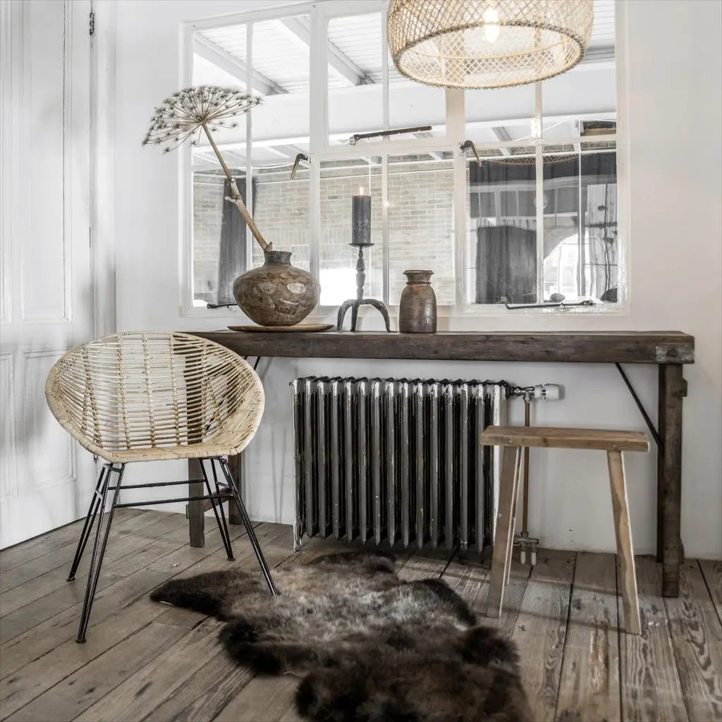 This handcrafted piece from Raw Materials brings a touch of Indonesian heritage to your home. Made from recycled teak wood, each bench features an authentic reclaimed top combined with re-made legs, resulting in a unique, one-of-a-kind piece. Its compact size makes it perfect as an accent stool, display stand, or occasional seating in bars, kitchens, or living spaces.