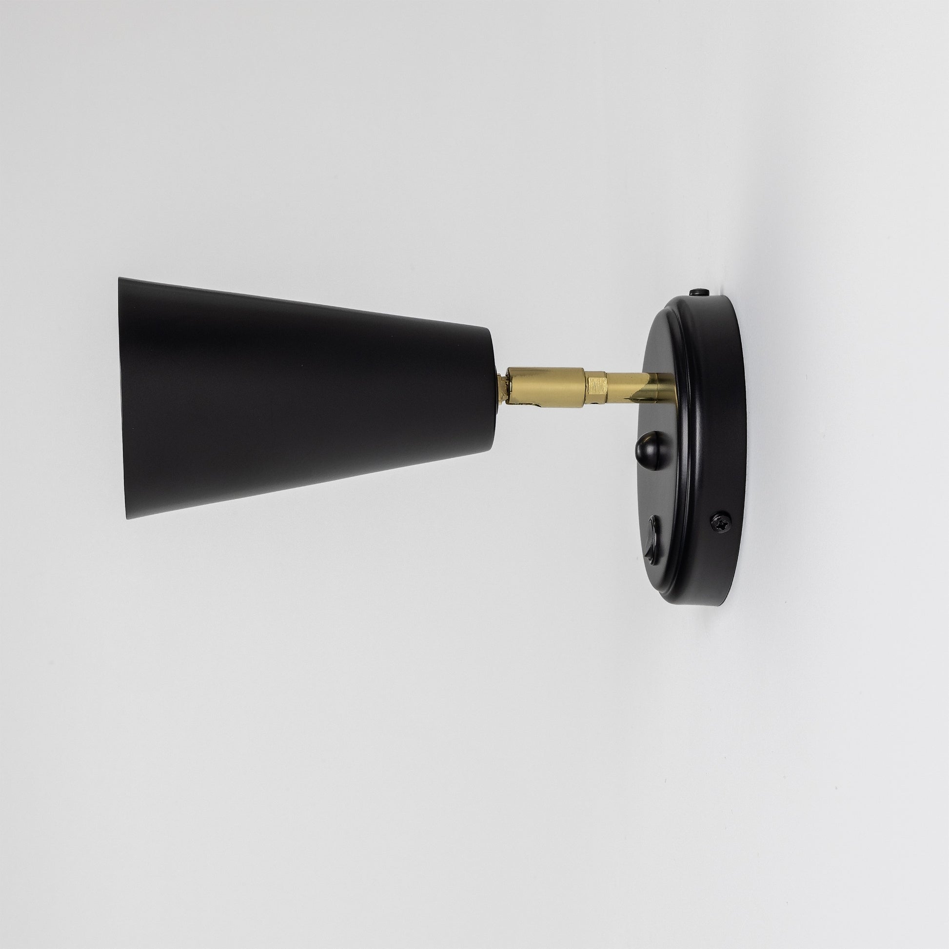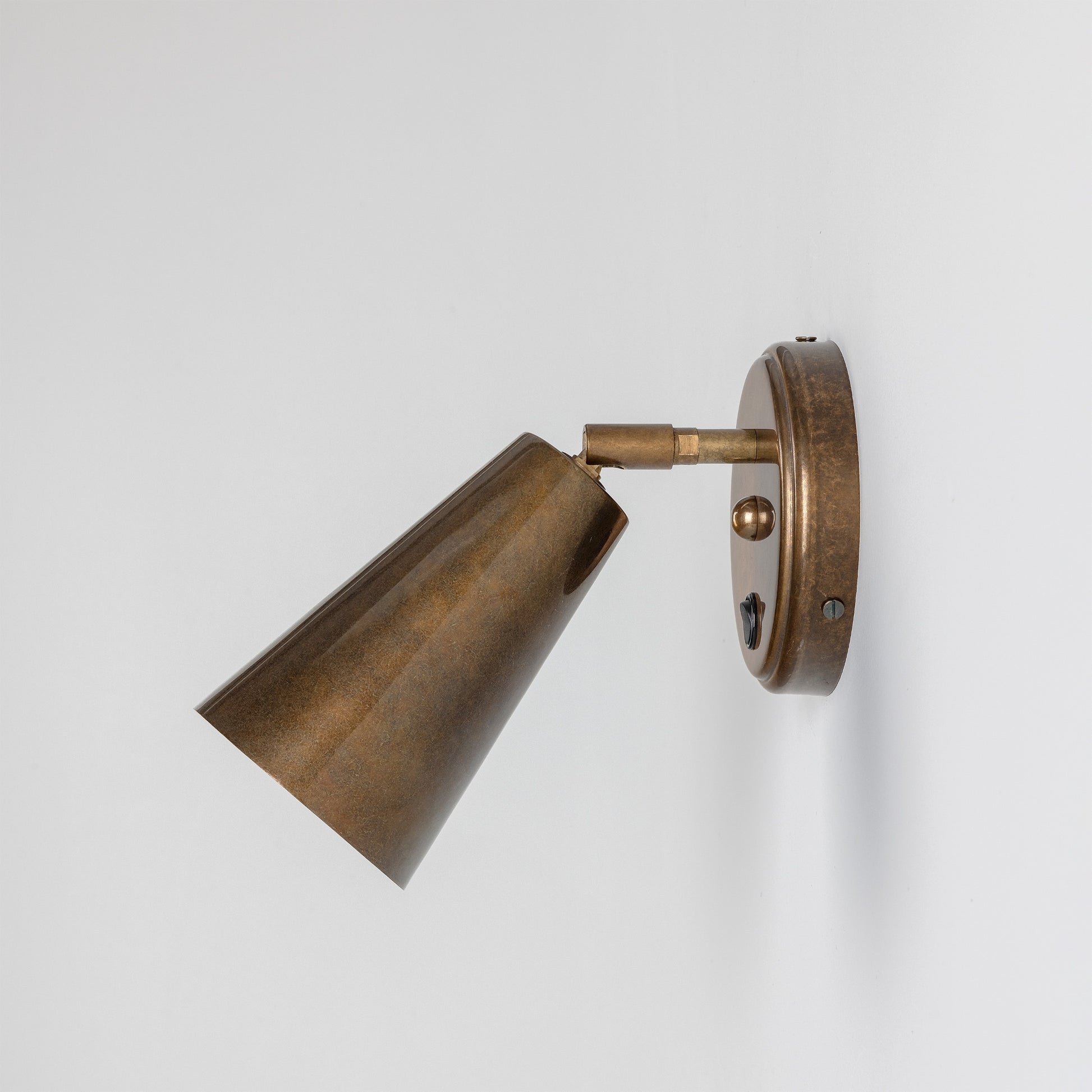 Blending practical design with industrial charm, this adjustable brass wall light features a smart conical shade and a built-in wall switch for easy use. The brass body and smooth metallic finish give it a warm, refined look that complements both modern and vintage interiors.