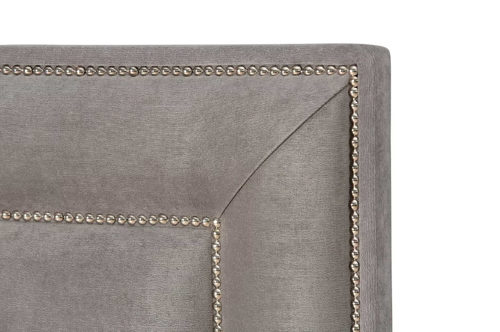 This upholstered headboard from Durabeds features a thick padded border finished with two rows of chrome or antique studding. The clean structure and 12mm capped edges give it a tidy, well balanced look that suits a range of bedroom styles.