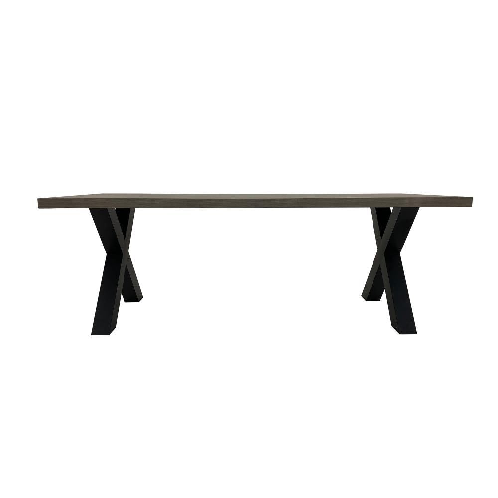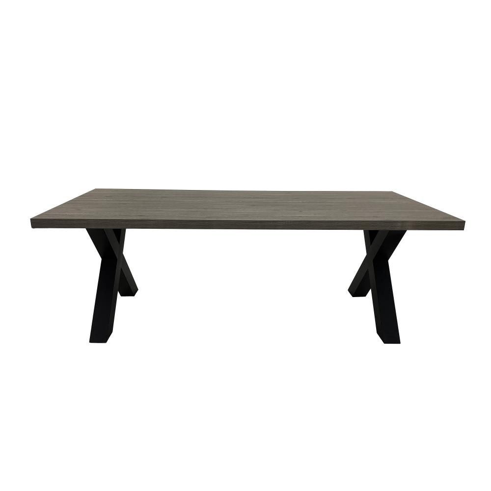 Bring industrial character and practical durability to your dining space with this sleek piece from Furniture Plus. The 220 cm wood effect top features SmarTops® technology, making it resistant to heat, stains and scratches and ideal for busy homes and larger gatherings. A clean cross frame base provides stability and style, creating a bold yet contemporary centrepiece.