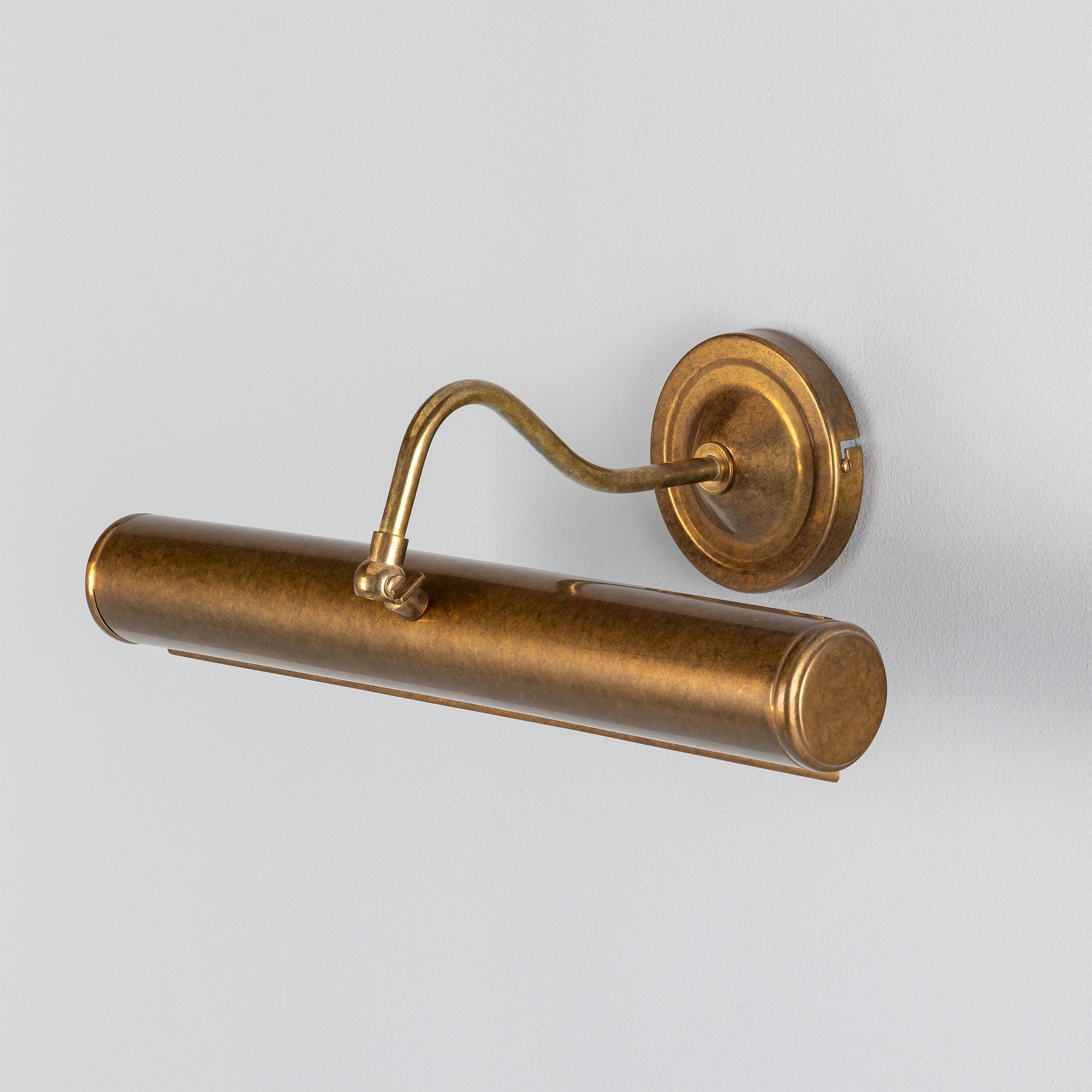 Designed to bring artwork to life, this handcrafted solid brass picture light combines timeless design with thoughtful detail. The curved arm and slim cylindrical shade offer a refined look, while the adjustable arm lets you position the light perfectly to highlight every brushstroke and texture.