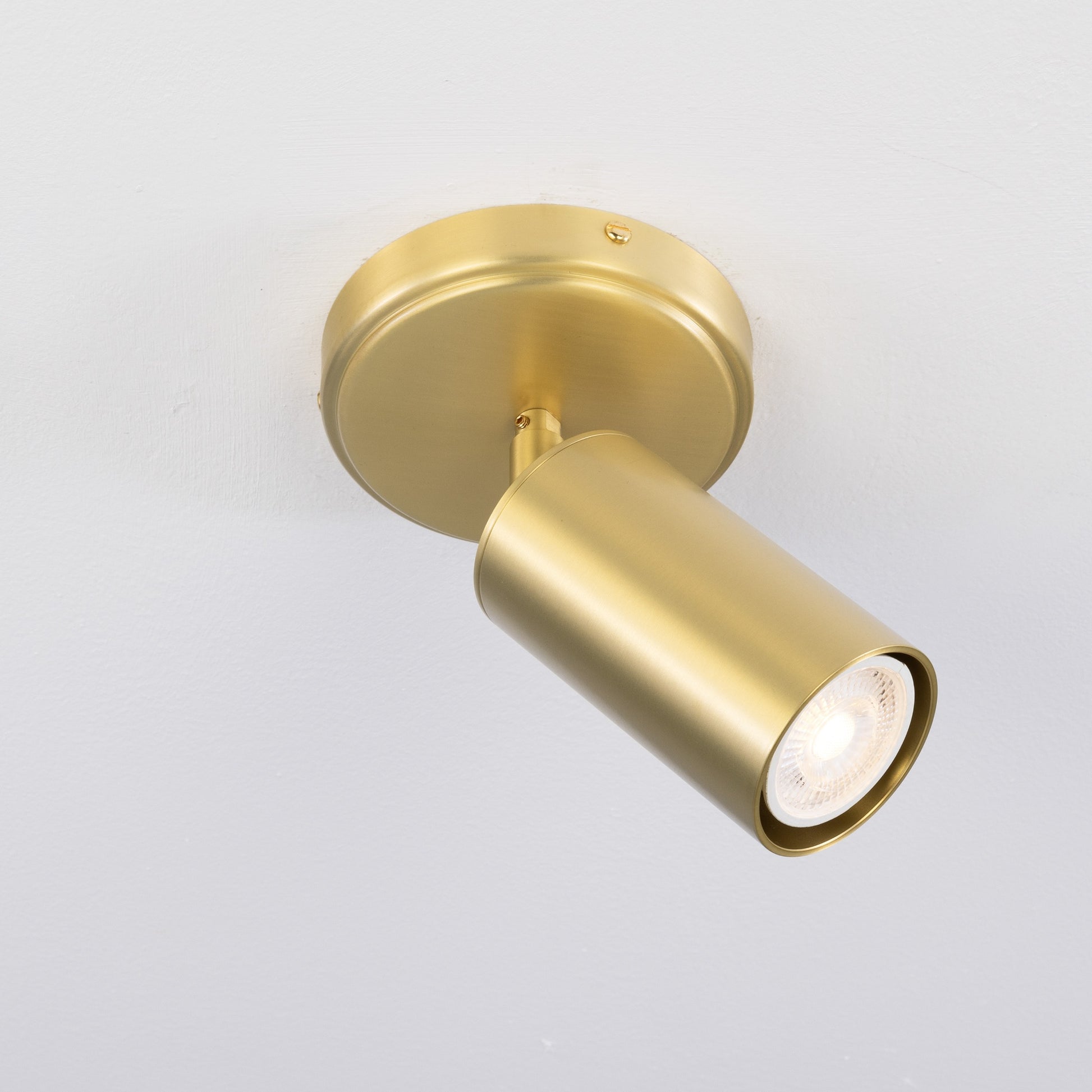 Blending functionality with a clean, modern design, this directional brass ceiling spotlight is built for flexible lighting. The cylindrical head can be easily adjusted, allowing you to direct light precisely where it’s needed.