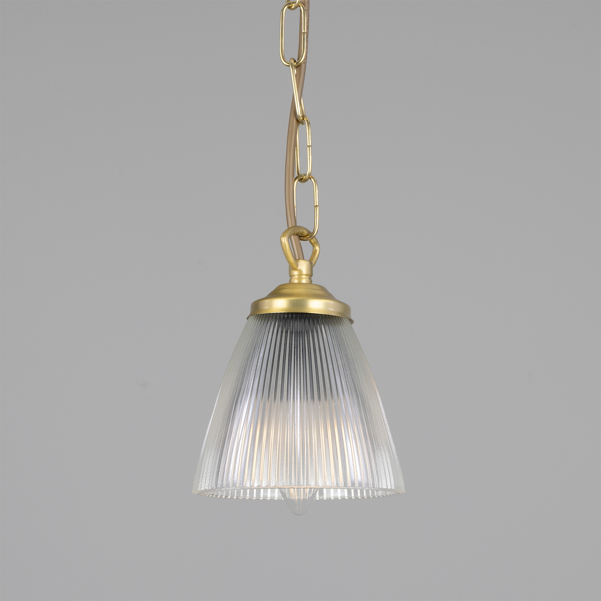 Defined by its clear prismatic glass, this pendant light delivers a crisp, refracted glow with a strong industrial character. Supplied by Mullan Lighting, the compact form and open-bottom design allow light to disperse evenly, helping to soften glare while maintaining clarity and brightness.