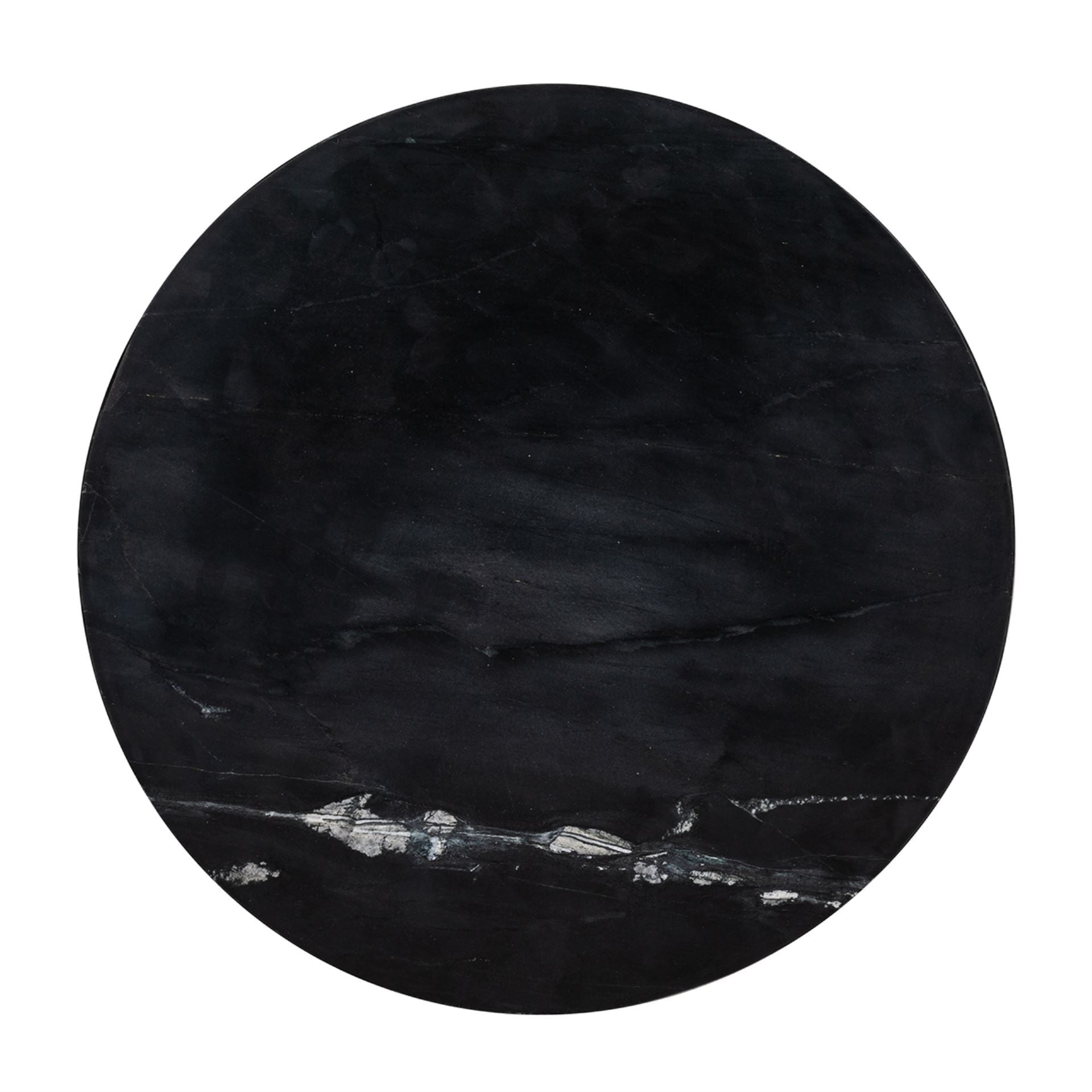 This unique round side table from Richmond Interiors combines luxury and industrial design. Featuring a black navy marble top and a gold-toned ridged metal base, it brings an elegant accent to any living space. Its compact size makes it ideal beside a sofa or armchair for holding drinks, books or a table lamp.