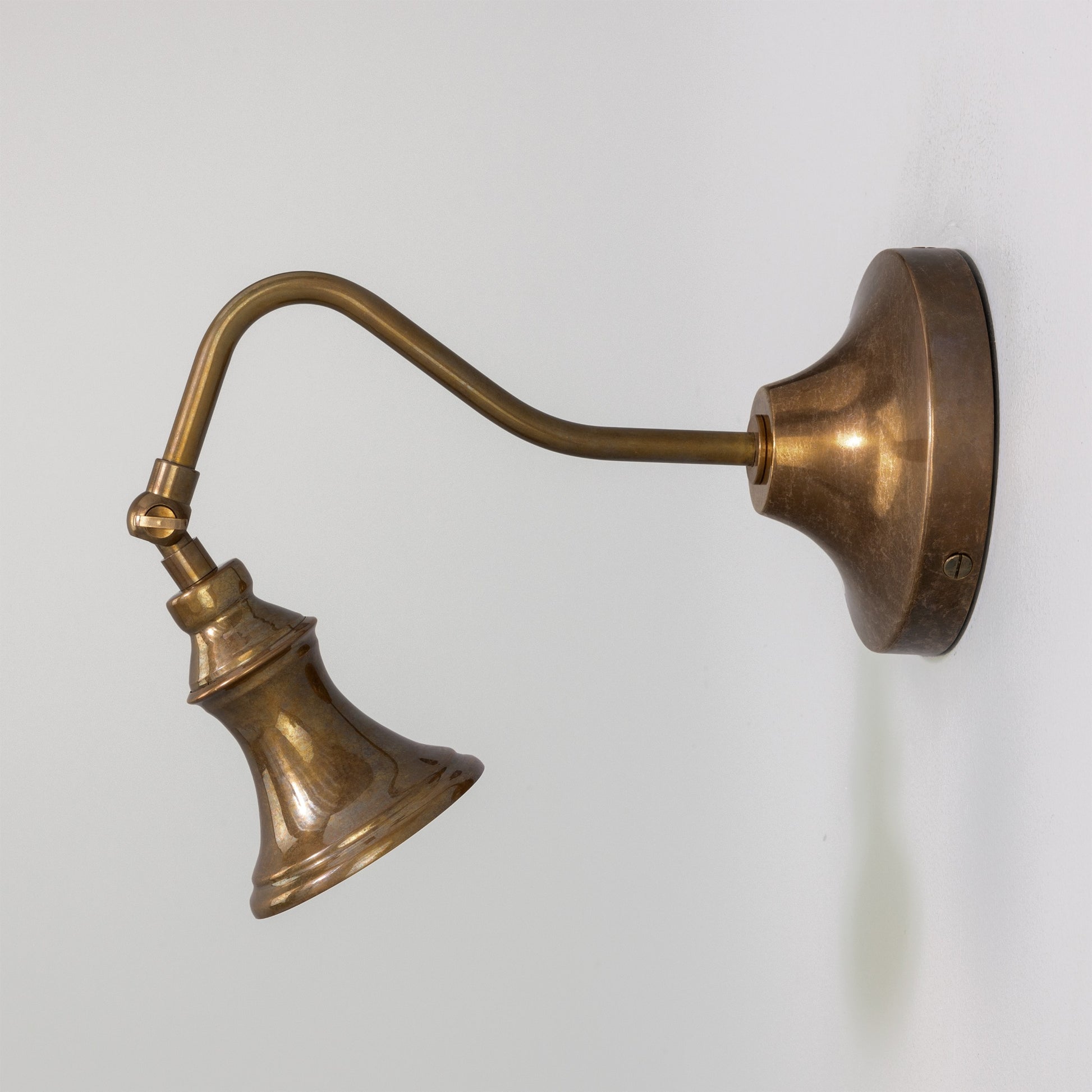 Classic design meets everyday practicality in this adjustable brass spotlight, perfect for accenting artwork, shelving, or architectural details. The flared shade and curved arm add a hint of vintage character, while the adjustable head allows you to direct light precisely where it’s needed.
