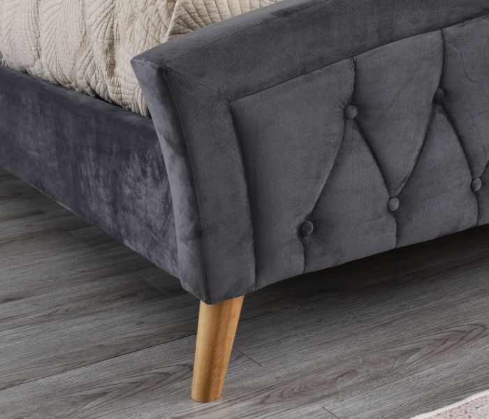 Blending classic design with modern living, the Kingston Standard Bed is upholstered in luxurious velvet for a rich, elegant finish. The grooved headboard and footboard feature refined button-back detailing, adding depth and character to its timeless silhouette. Resting on four sturdy wooden feet, this bed combines beauty with everyday durability. For added practicality, it also offers an optional underbed storage solution perfect for keeping your space stylishly clutter-free.