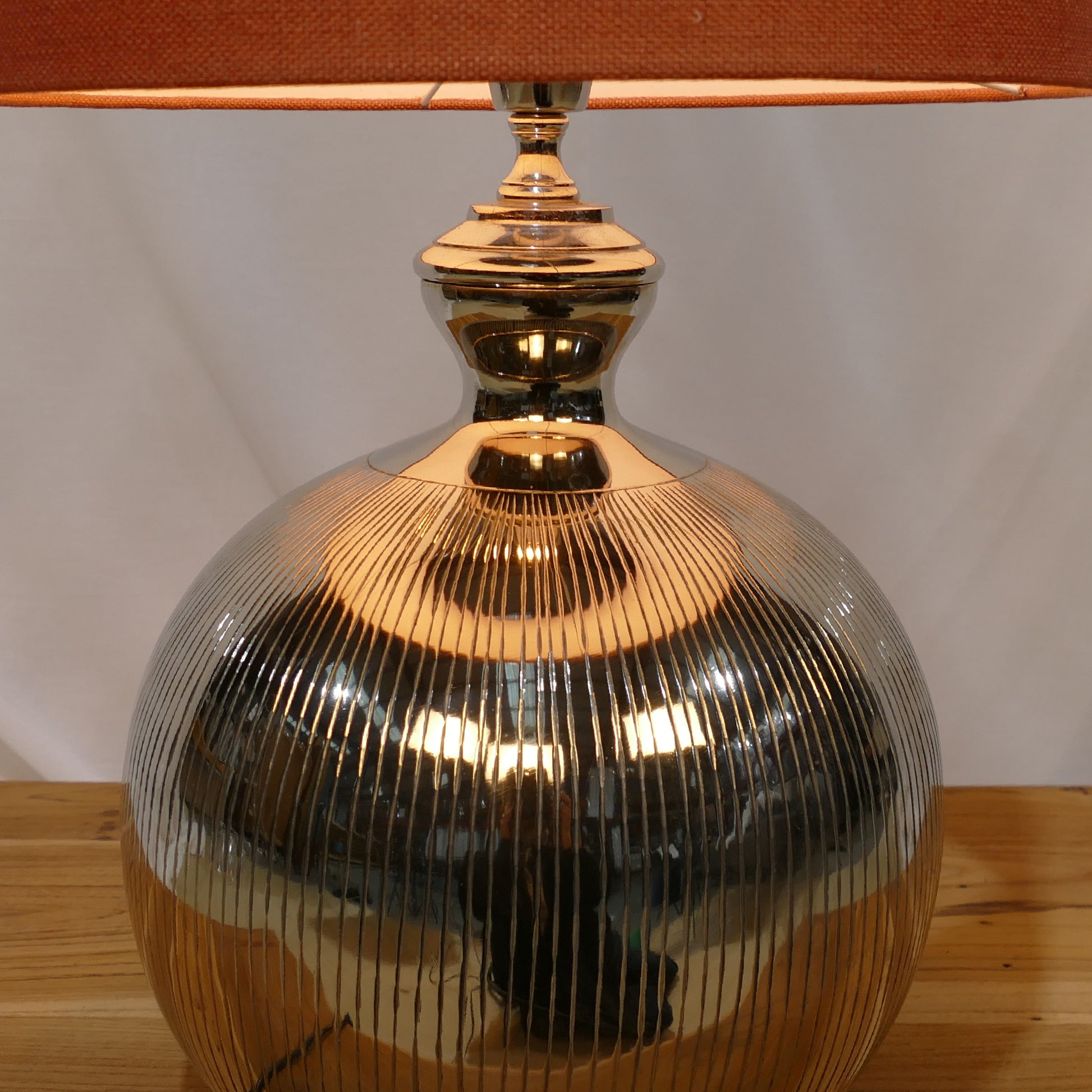 Ribbed Chrome Table Lamp with Rust Orange Shade