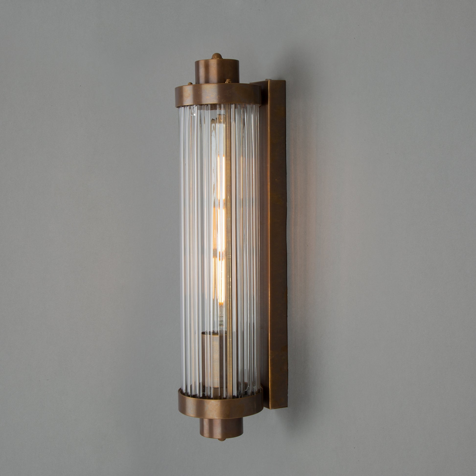 Louise Vintage Rippled Glass and Brass Bathroom Wall Light 47cm IP44