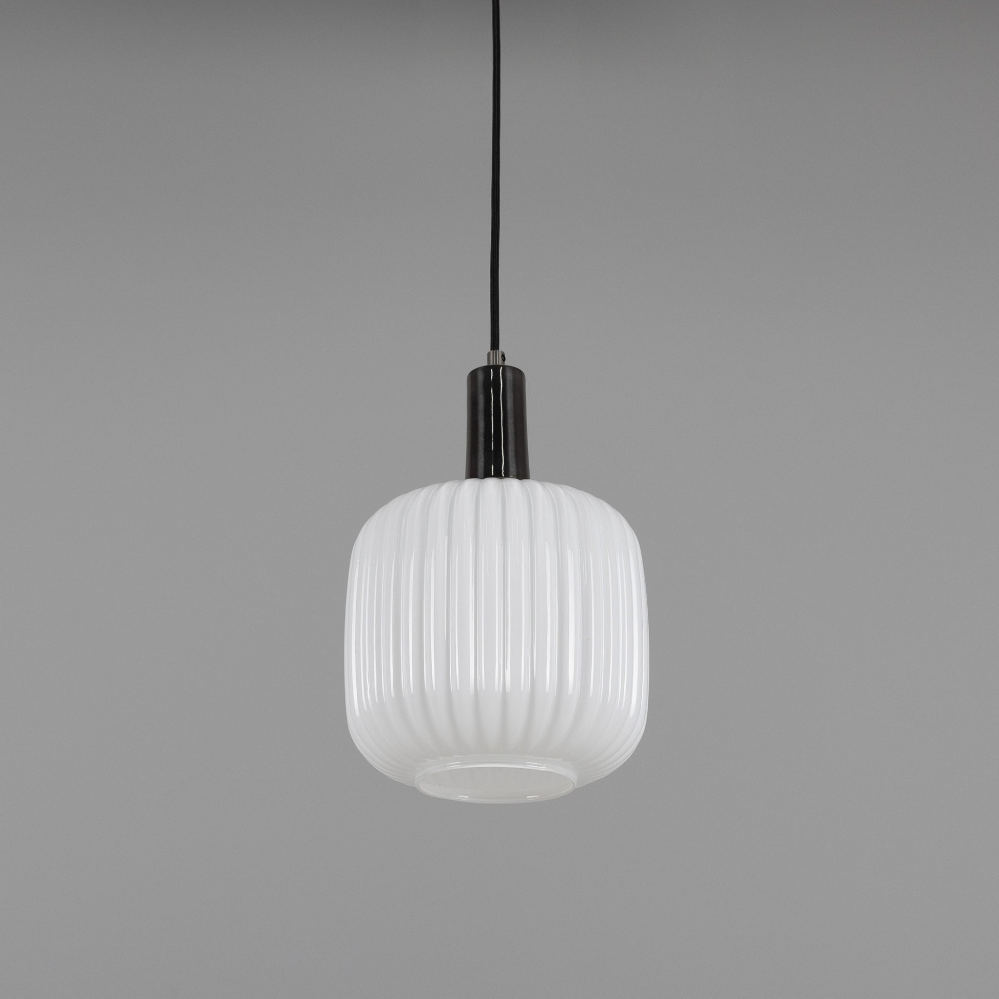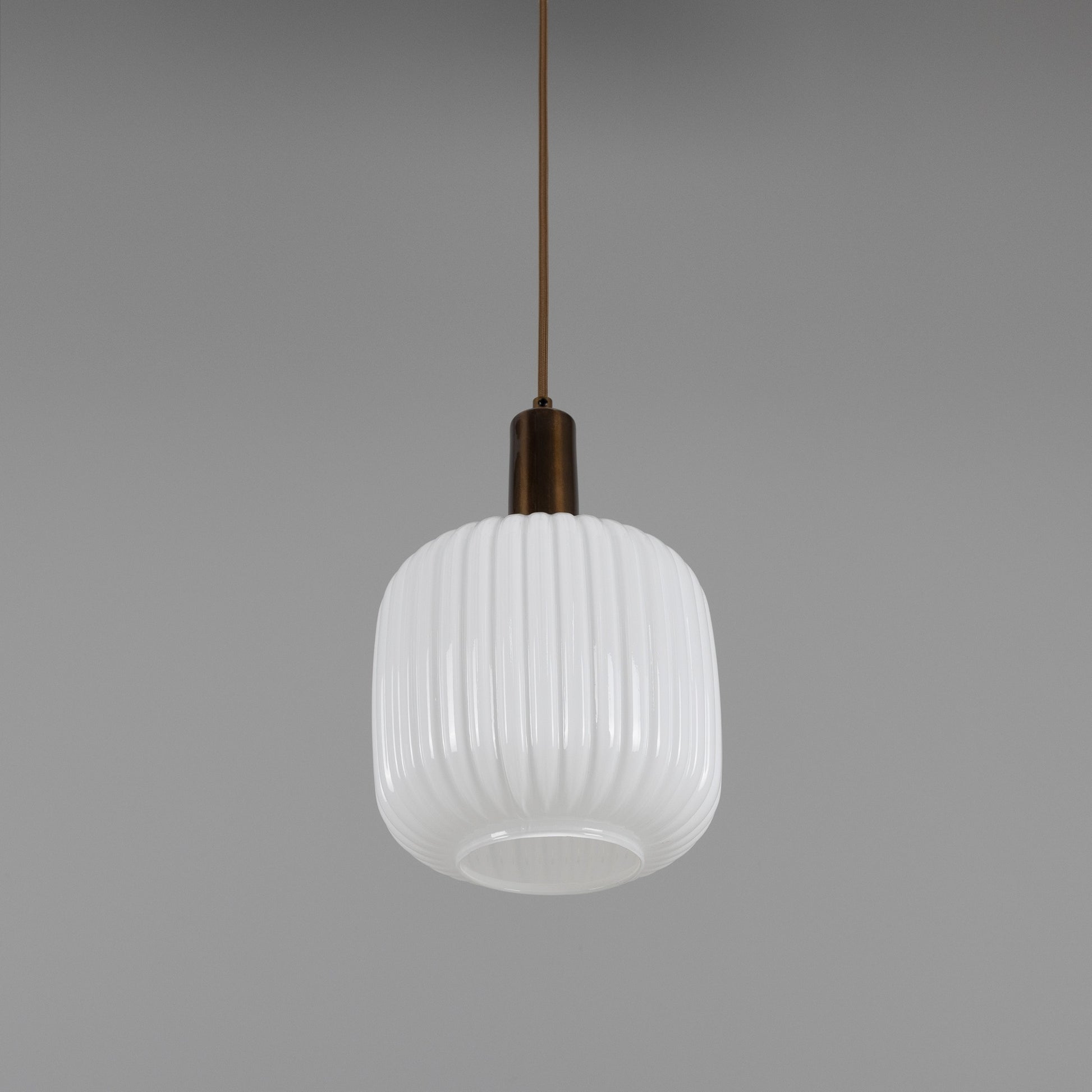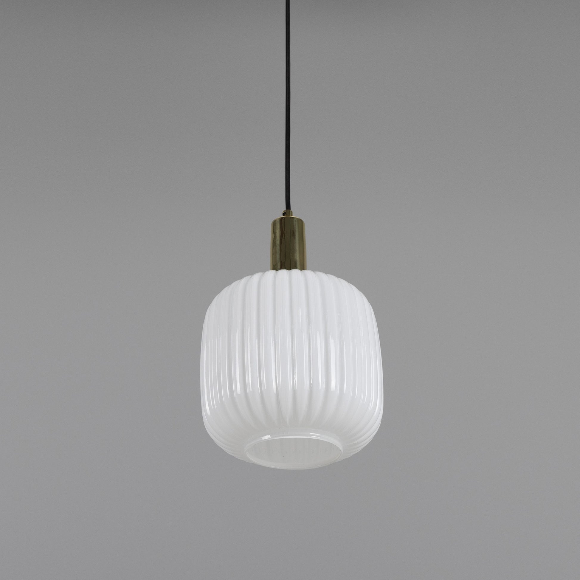 With its refined shape and tactile texture, this pendant brings understated sophistication to any space. The cylindrical glass shade features soft, rounded edges and a ribbed surface that diffuses light beautifully, casting a warm and inviting glow.