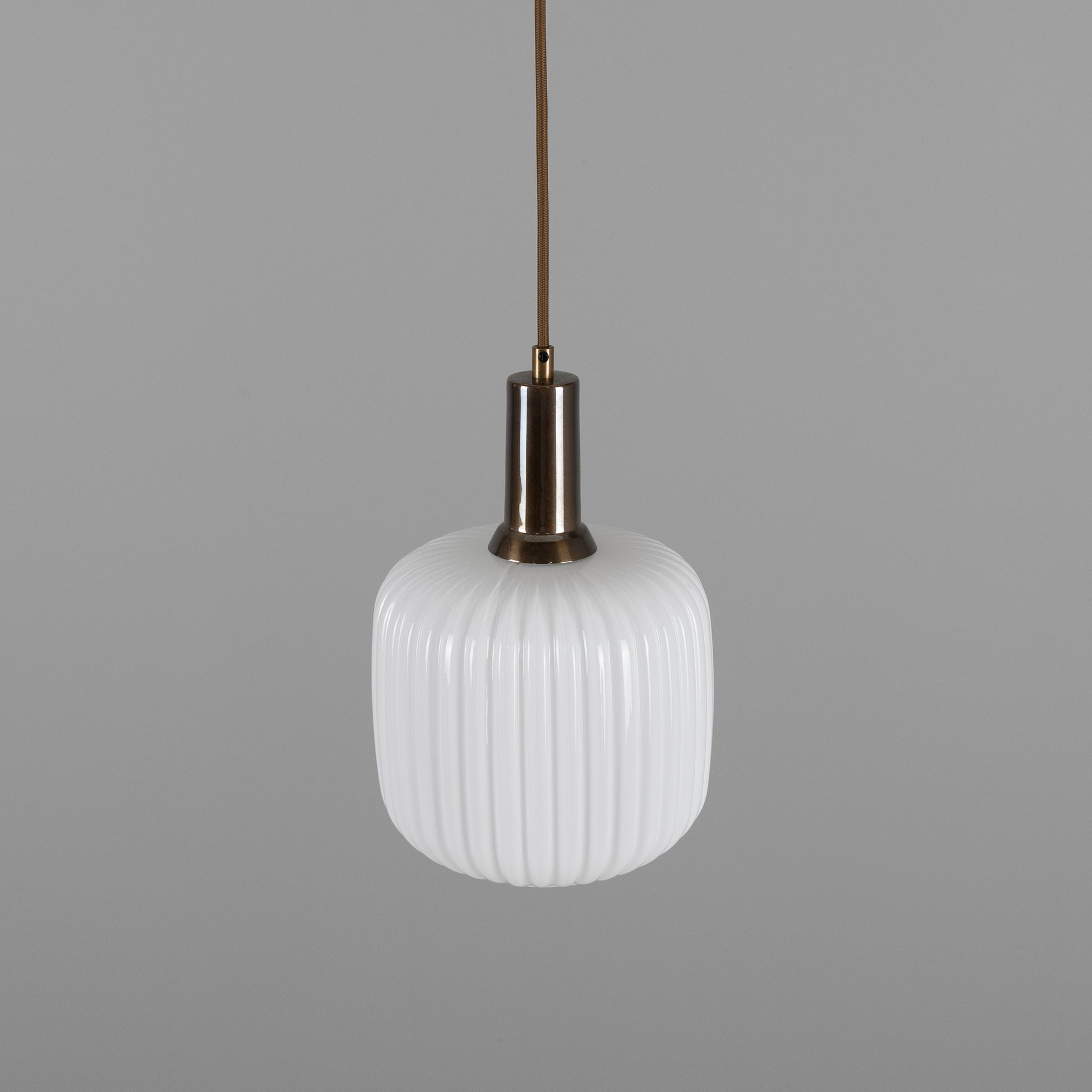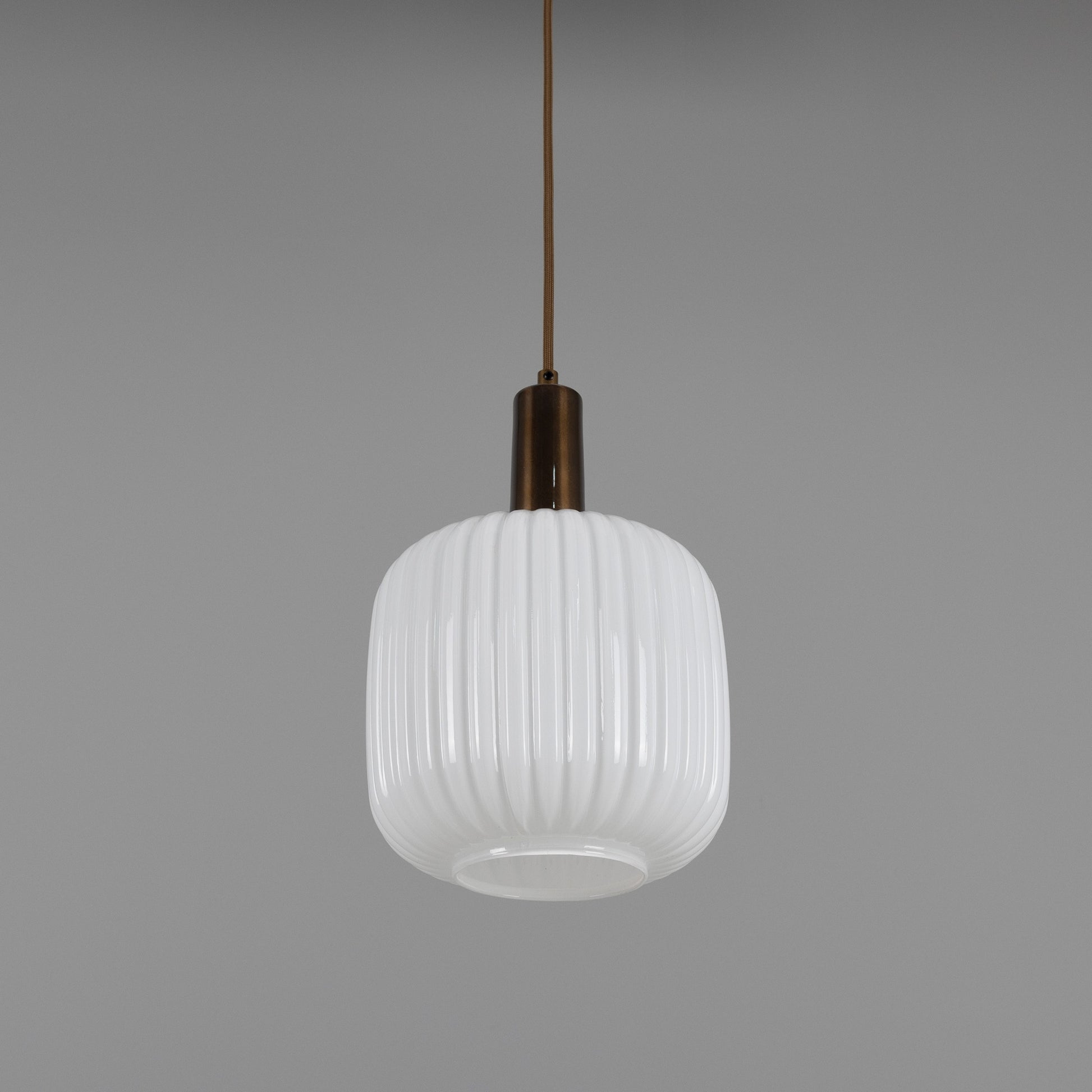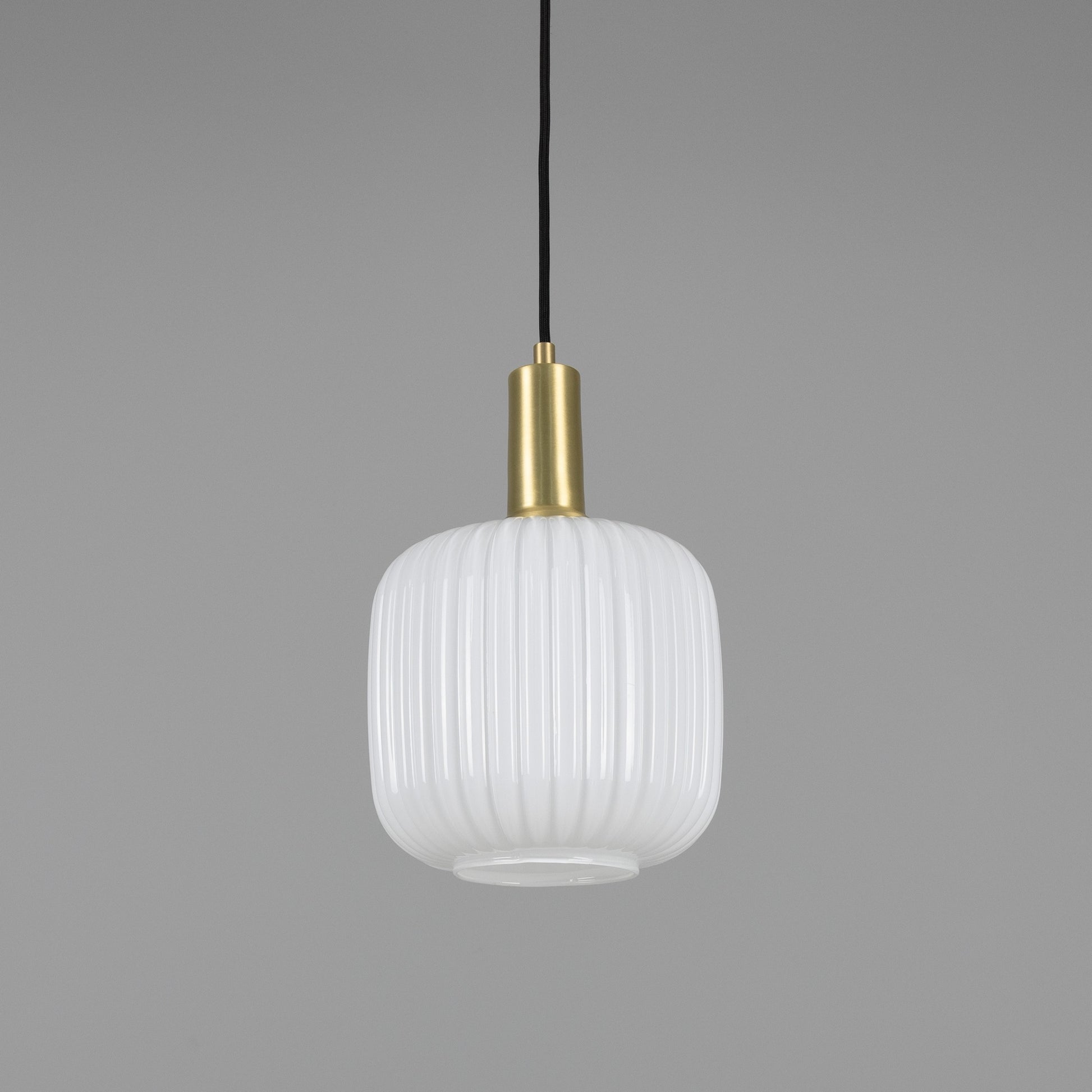 With its refined shape and tactile texture, this pendant brings understated sophistication to any space. The cylindrical glass shade features soft, rounded edges and a ribbed surface that diffuses light beautifully, casting a warm and inviting glow.