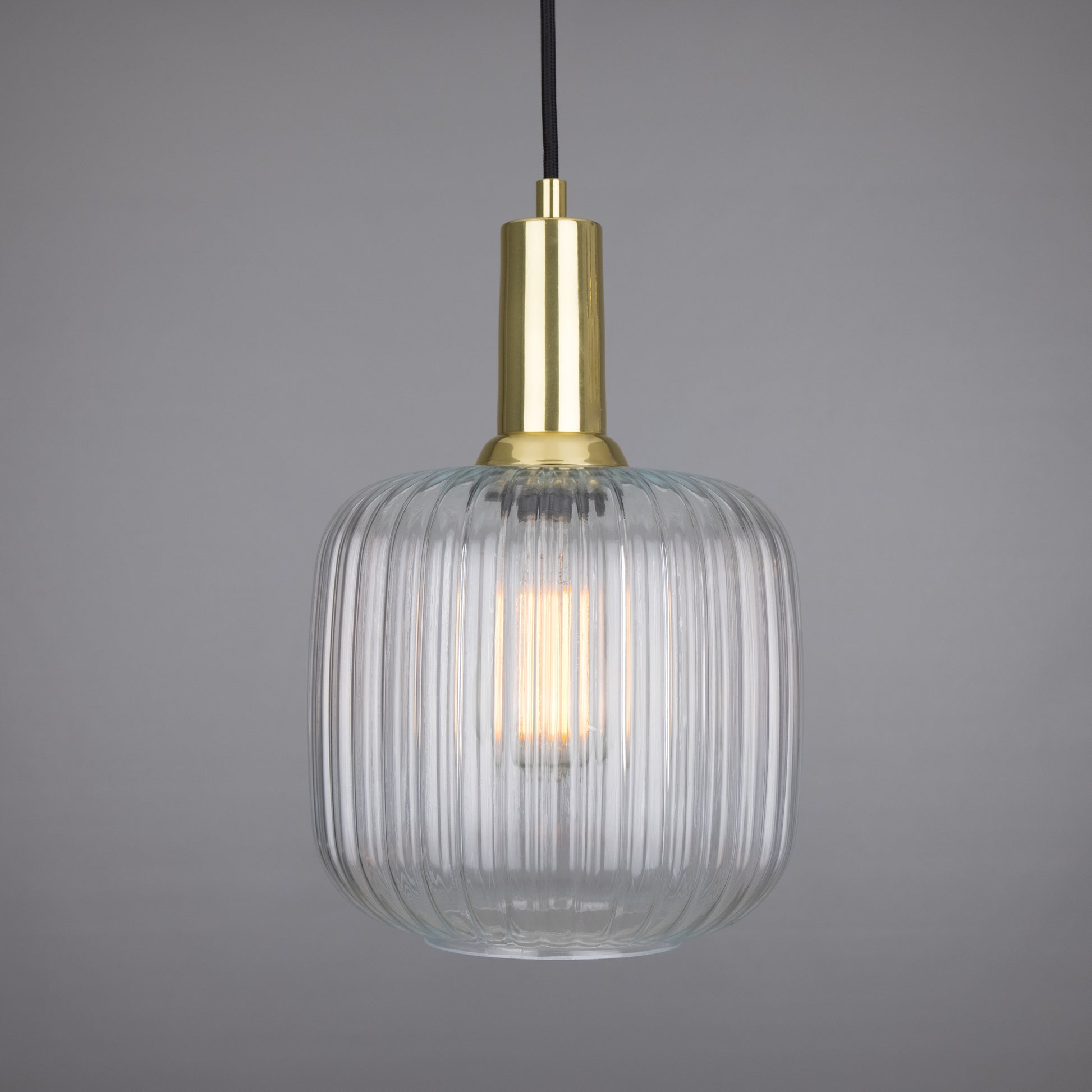 Nahla Reeded Glass and Brass Pendant Clear or Opal 20cm IP20