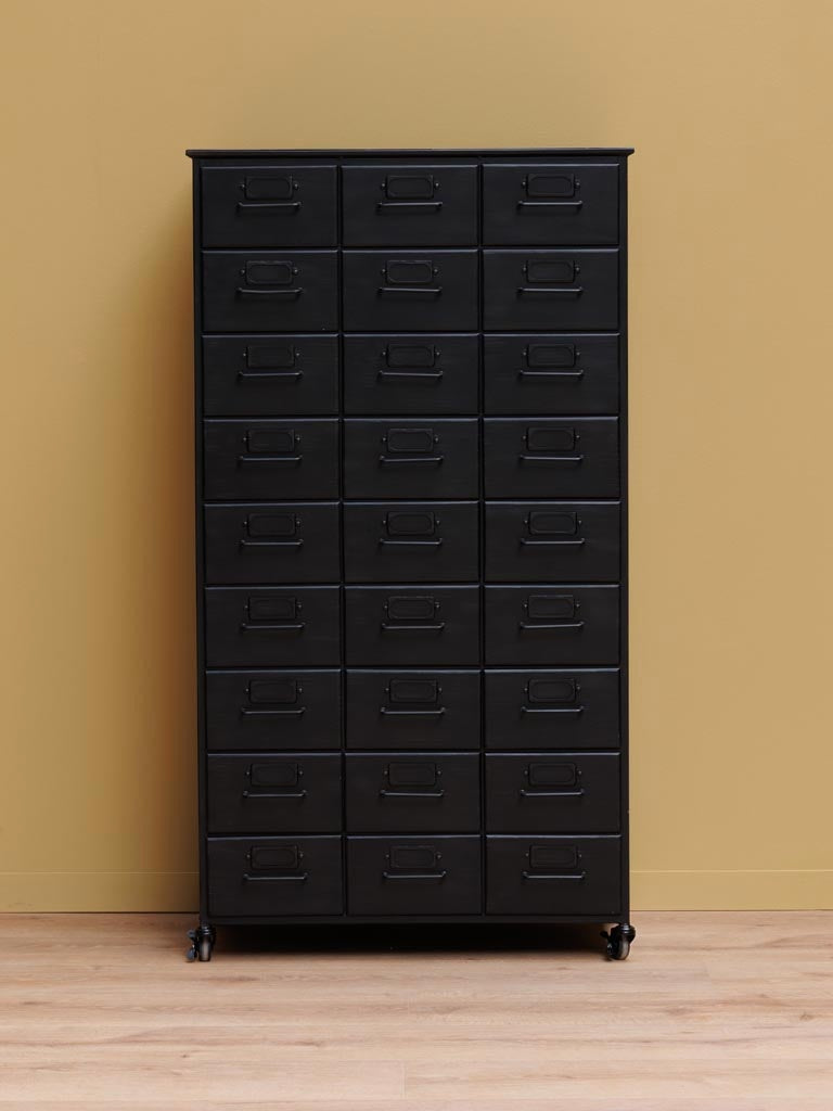 This multi-drawer cabinet combines industrial character with practical design, offering plenty of space for storage and organisation. Designed by Chehoma, it’s made entirely from iron for strength and durability, giving it a robust feel that suits both home and professional settings. The matte black finish and functional layout make it a stylish yet hardworking addition to any office or creative space.