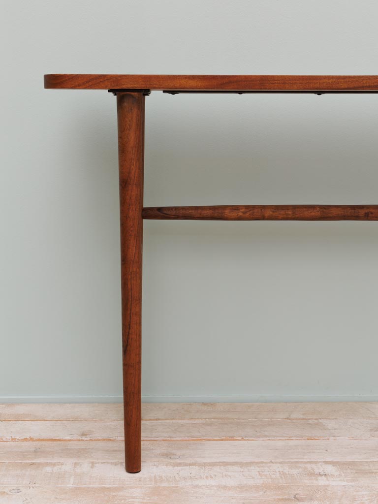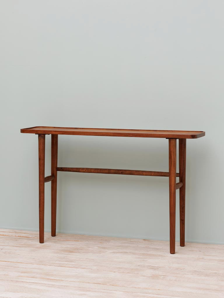 Slim and functional, this console table is perfect for hallways, living rooms, or behind a sofa. Made from mango wood, its clean lines and natural grain add warmth without taking over the space. A versatile piece from Chehoma, the Belgian interiors brand known for timeless design.