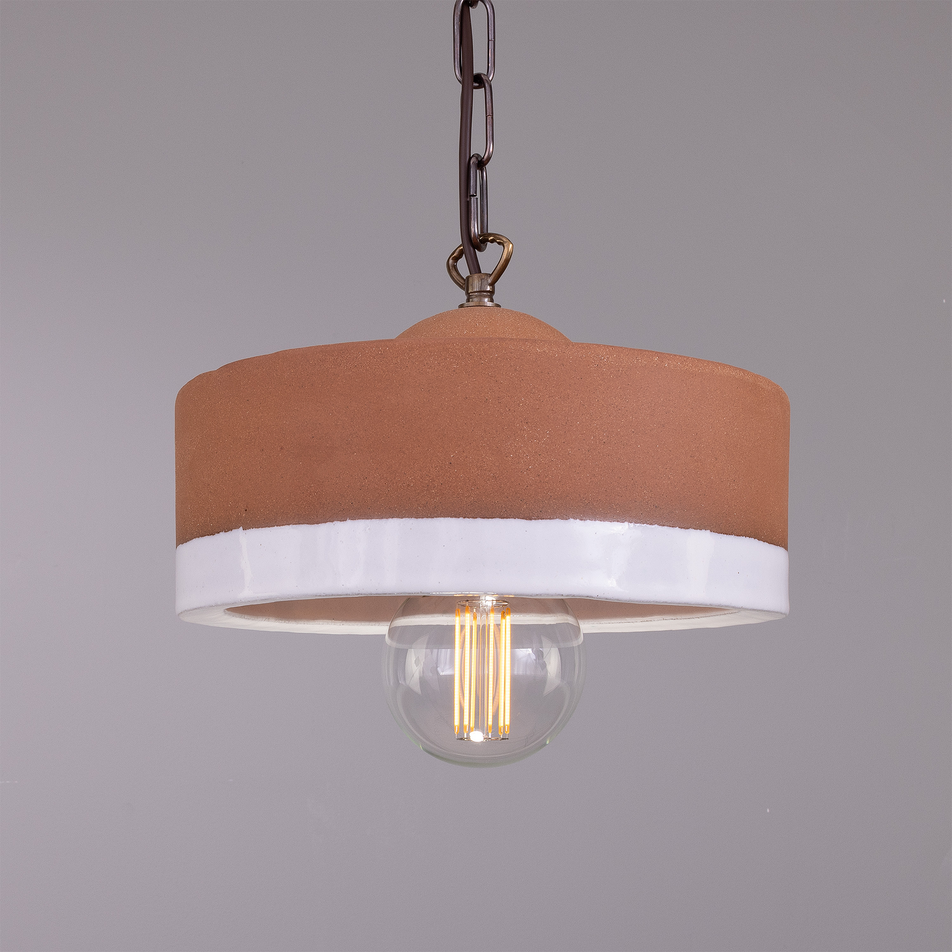 Seville Ceramic Mid-Century Modern Pendant Light, Terracotta and White Glaze