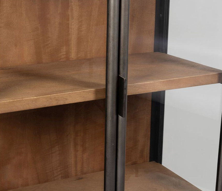 A timeless storage piece crafted from solid mango wood with a soft natural finish. The grey-painted frame adds gentle contrast, while the glass-fronted doors keep the design feeling open and light. Inside, spacious shelving offers plenty of room for displaying or storing everyday pieces.