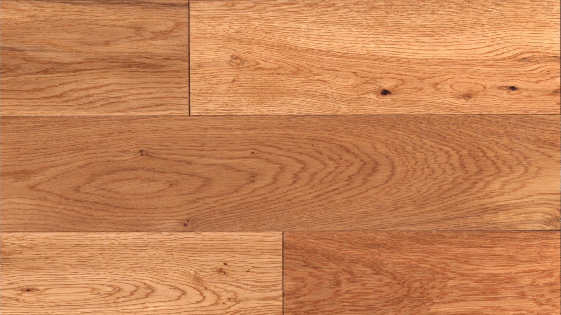 A beautiful solid white oak floor with a clean UV satin lacquer. Architectural/Natural grade shows gentle colour movement with small, attractive knots. 125 mm tongue-and-groove boards in random lengths give a calm, modern plank look and install cleanly by glue or nail. Solid timber can be re-sanded for a long life.