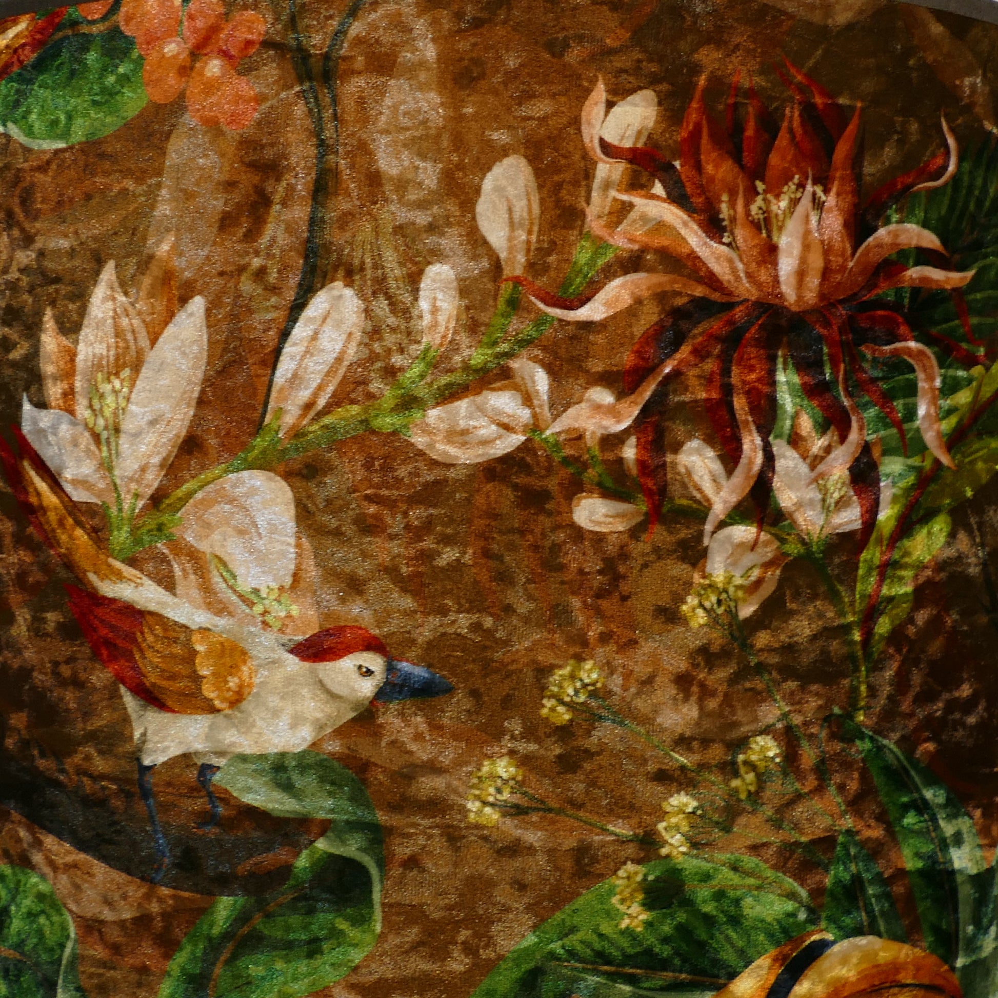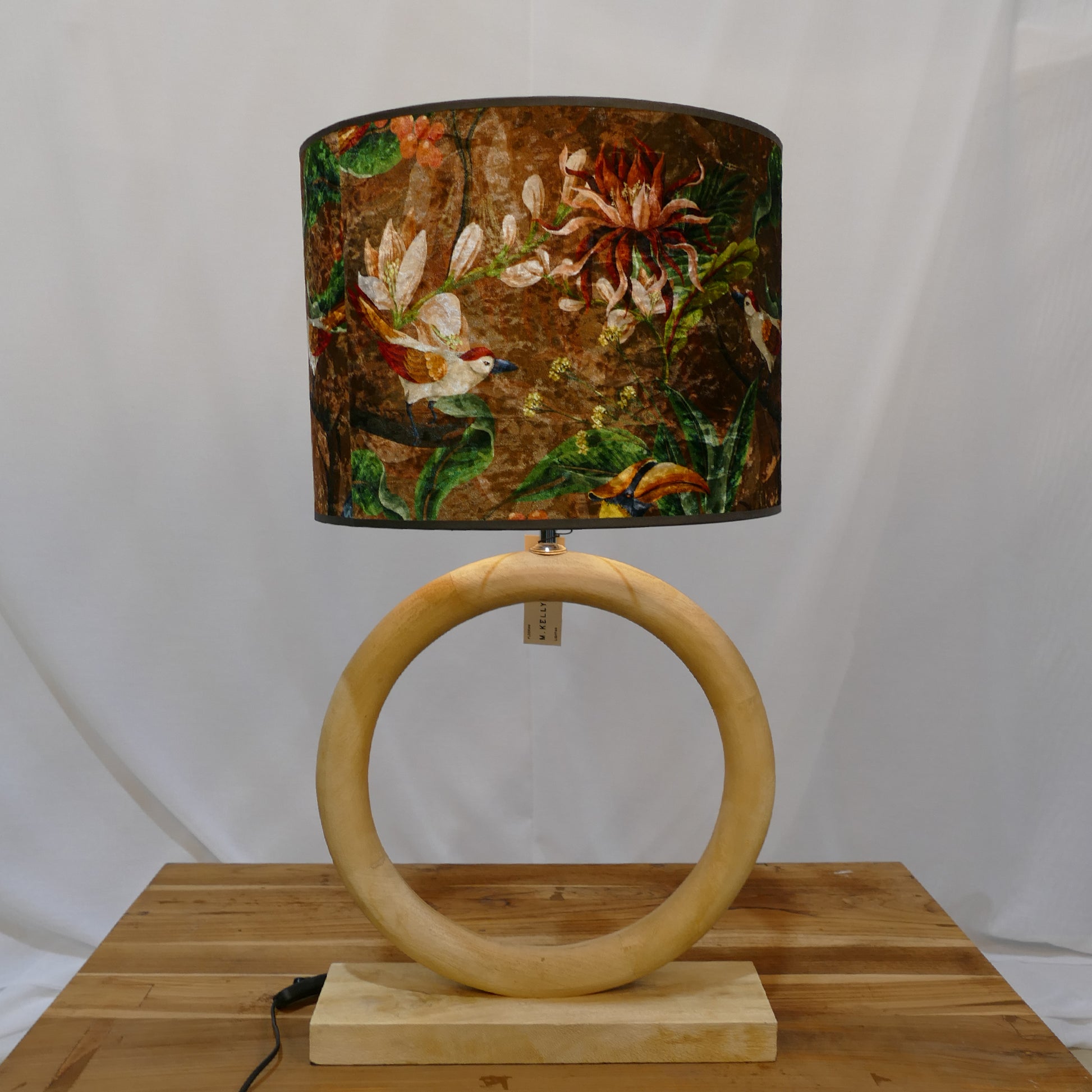 Wooden Ring Lamp with Floral Patterned Drum Shade