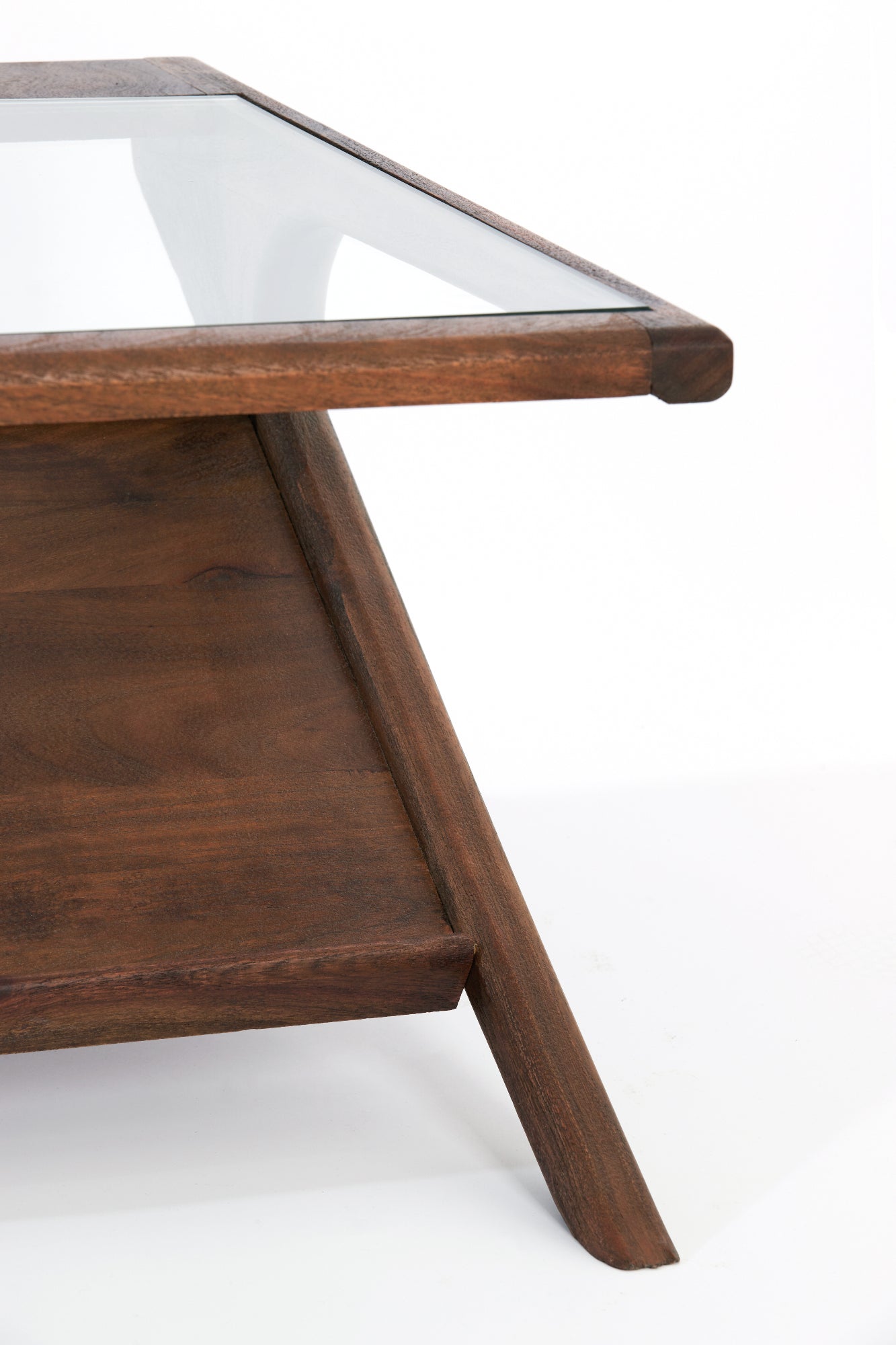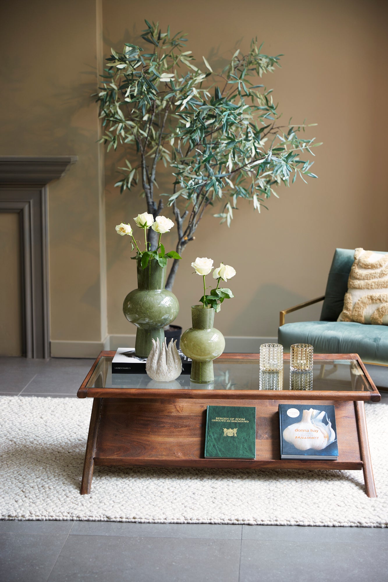 This sophisticated coffee table from Lights & Living blends rich dark acacia wood with a sleek glass top for a timeless, elegant look. The smooth, curved frame adds a touch of softness to modern interiors, while the spacious rectangular surface provides plenty of room for books, décor or drinks. Perfect for creating a warm and inviting focal point in your living room, it combines style, craftsmanship and everyday practicality.